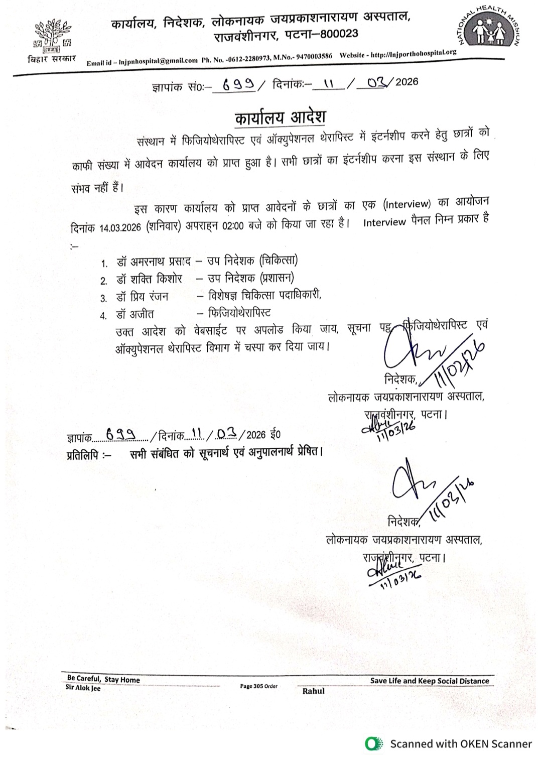 एलएनजेपीएन अस्पताल, राजवंशी नगर,पटना के निदेशक के रूप में डॉ राकेश चौधरी की नियुक्ति के संबंध में अधिसूचना